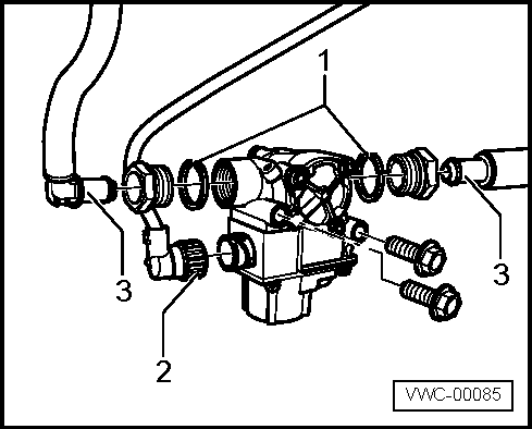 - Remover as conexões VOSS de entrada e saída da válvula (3).